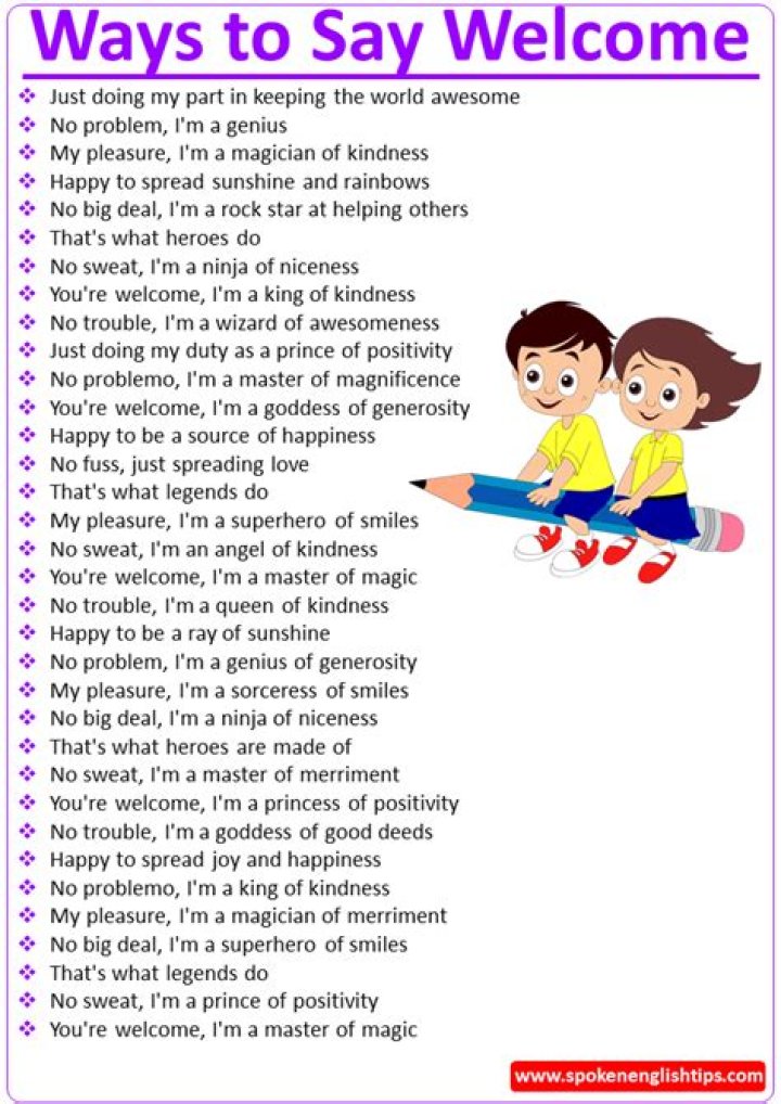 Here are a few more ways to say “You’re welcome” in English.