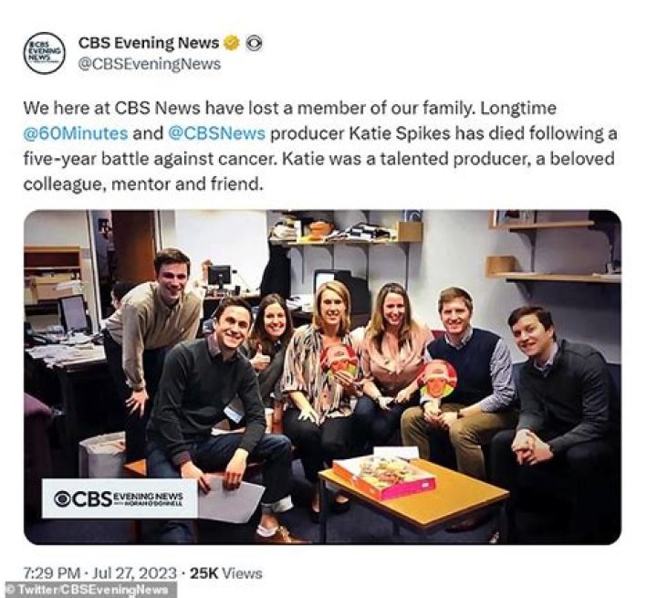 Katie Spikes was an American producer for 60 Minutes and has passed away at the age of 53 years. She was at the network for three decades in a number of producing roles, including as senior story editor. of 60 Minutes. She was tasked with many high-profile guest bookings, ranging from former President Barack Obama to Olympic gold medal winner Michael Phelps.