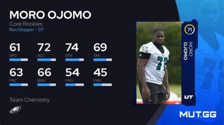 Morotoluwa Ojomo, born August 15, 2001, in Lagos, Nigeria, is a Nigerian-born American football defensive tackle for the Philadelphia Eagles of the National Football League (NFL).