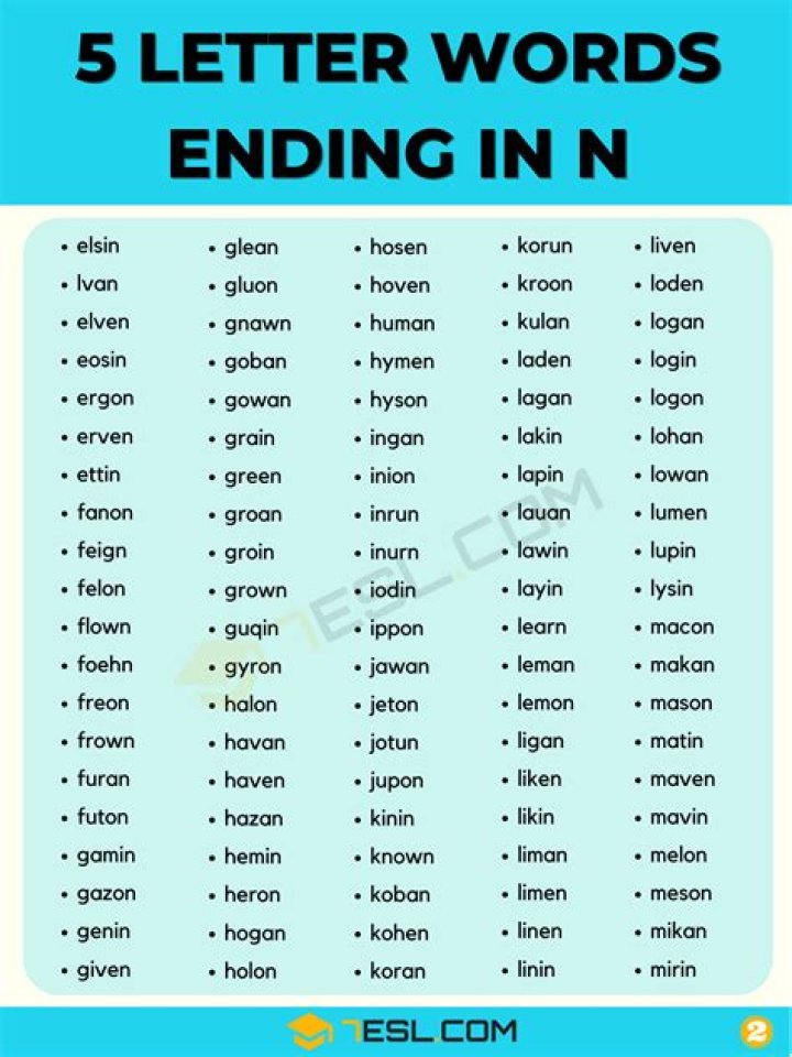 5-letter words ending in ‘N’