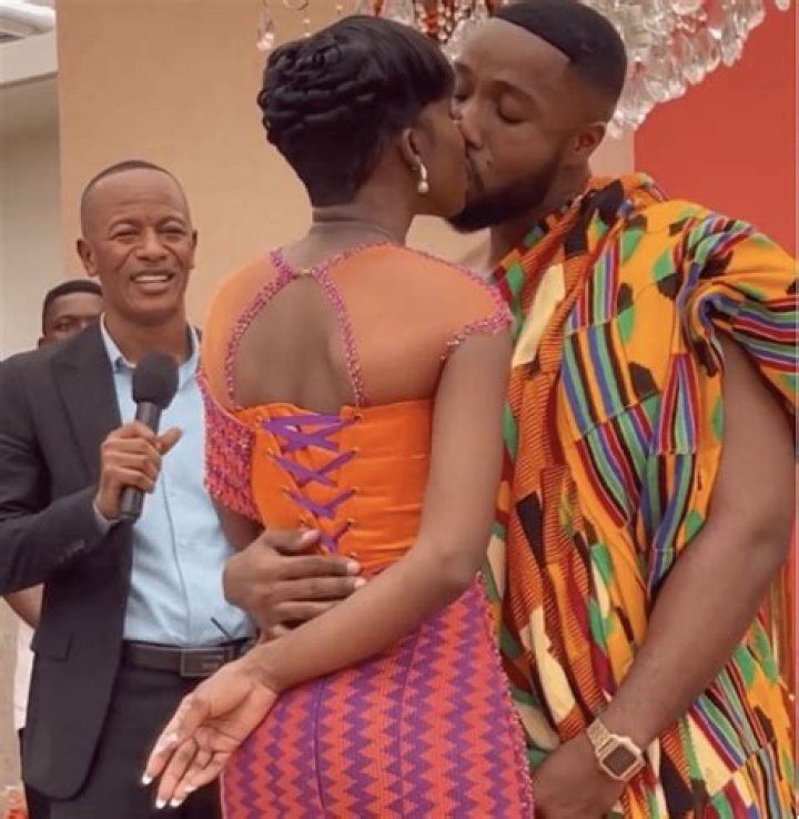 Photo of the bride and groom in Kente has surfaced on the internet.