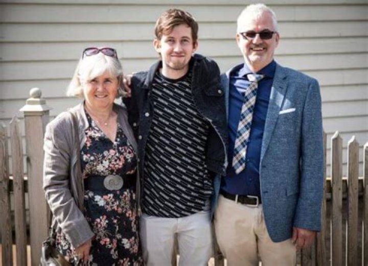 Alan Walker is in the middle of his parents, and all three are smiling in that photo.