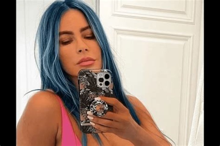 Sofía Vergara is inspired by Karol G and wears her blue hair in a cute pink swimsuit