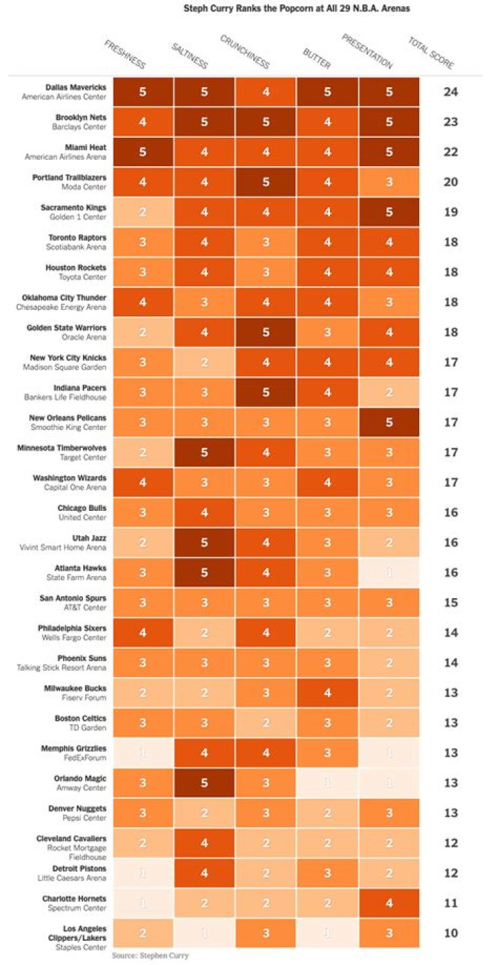 What are Steph Curry’s popcorn rankings?